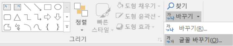 가끔은 불필요한 폰트가 지정돼 있는 경우도 있는데, 파워포인트에서 글꼴을 변경하고 싶을 때 보통은 바꾸기 > 글꼴 바꾸기를 통해 사용된 폰트를 한꺼번에 다른 폰트로 바꿀 수 있다.